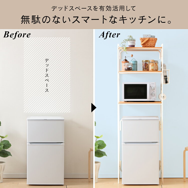 冷蔵庫だけではなく、ゴミ箱上のラックなどとしても活躍!≪お客様組立品≫●商品サイズ(cm)外寸:幅約58×奥行約39.5×高さ約180可動棚:幅約55.5×奥行約39バスケット 内寸:幅約28×奥行約7 外寸:幅約30×高さ約22.5×奥行約10.5●対応冷蔵庫幅55cmまで●耐荷重全体:約22kg可動棚:約12kgバスケット:約3kg●素材本体:スチール(粉体塗装)棚板:低圧メラニン化粧版ペーパーホルダー・バスケット:スチール(粉体塗装)●カラーホワイト・ブラック(検索用:冷蔵庫ラック 3段 三段 冷蔵庫 キッチン収納 キッチンラック フリーラック オープンラック 新生活 一人暮らし ひとり暮らし 独り暮らし 収納 キッチン収納 4967576408653 4967576408660)アイリスオーヤマ春の新生活フェア★