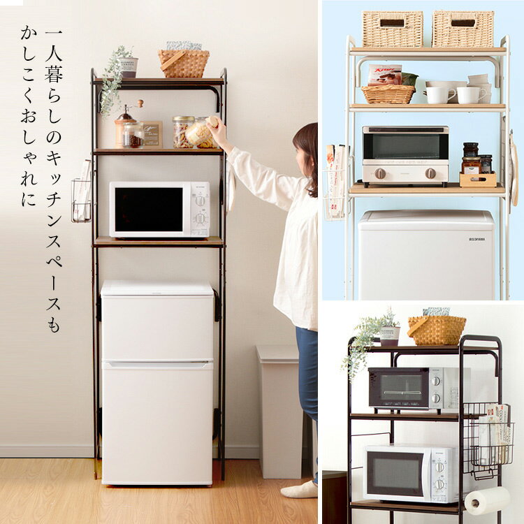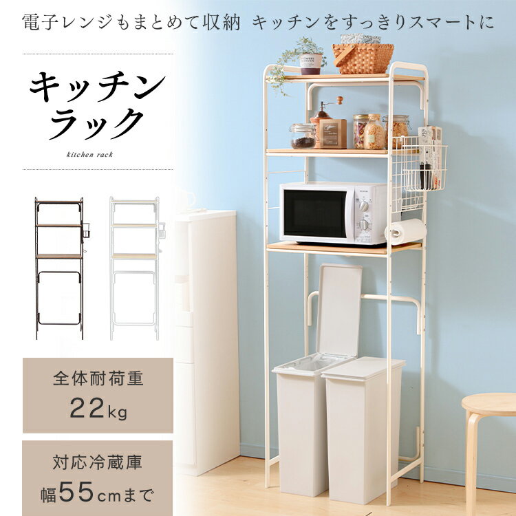 冷蔵庫だけではなく、ゴミ箱上のラックなどとしても活躍!≪お客様組立品≫●商品サイズ(cm)外寸:幅約58×奥行約39.5×高さ約180可動棚:幅約55.5×奥行約39バスケット 内寸:幅約28×奥行約7 外寸:幅約30×高さ約22.5×奥行約10.5●対応冷蔵庫幅55cmまで●耐荷重全体:約22kg可動棚:約12kgバスケット:約3kg●素材本体:スチール(粉体塗装)棚板:低圧メラニン化粧版ペーパーホルダー・バスケット:スチール(粉体塗装)●カラーホワイト・ブラック(検索用:冷蔵庫ラック 3段 三段 冷蔵庫 キッチン収納 キッチンラック フリーラック オープンラック 新生活 一人暮らし ひとり暮らし 独り暮らし 収納 キッチン収納 4967576408653 4967576408660) 当店おすすめ特集★